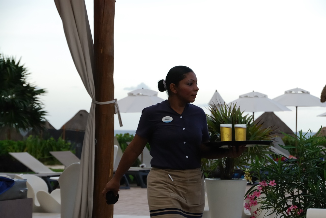 Отель Ocean Coral & TurquesaТеперь хочу поделиться своими впечатлениями об отеле, где довелось провести неделю. Напомню, что основная цель поездки это участие в конференции по соединениям A2B6. И организаторы подошли к выбору места и отеля со всей серьезностью. В качестве такового был выбран пятизвездочный Ocean Coral & Turquesa, расположенный на Майянской Ривьере недалече от пос. Пуэрто-Моралес. Это отель, работающий по системе "всё включено", что в общем-то, было нам на руку. Цены на проживание, конечно, не дешевые. Но зато реальные 5 звезд. Мне трудно сравнить с турецкими "all inclusive", ибо просто в Турции я не был, да и не собираюсь. На территории 5 ресторанов, несколько баров, бассейнов... ...вечерами дискотеки... ...персонал приветливый и вышколенный. Минибар в номере исправно пополняли Вот мне несут пиво - dos cervezas Всё делают хорошо и без доп. чаевых - хотя в Мексике, как я понял, это редкость - американцы всех избаловали. Сидишь себе недалече от бара, к тебе подходят - чего сеньор желает? Без напряга. бармены тоже приветливые, наливают быстро и професионально. Пиво, правда, только светлое - Corona Extra (но холодное и вкусное), вино не шибко замечательное, зато текилы хоть в чистом виде, хоть в виде коктейлей - просто завались. Мой выбор - дабл текила санрайз Море, правда, на троечку - мелко, взбаламучено, грязновато. Именно море. Пляж таки чистый и постоянно убирается. Но что делать на пляже, когда кругом жара и духота? Хотя кому-то это и нравится...Но я то человек северный, и тропики, похоже, не для меня Причем через полчаса после восхода дышать уже просто нечем . Ночью тоже душно. Но кондеи в помещениях работают исправно, а холодное пиво эффект усиливает От этой жары у меня начал сбоить фотоаппарат. А влажность не дает сделать норм снимки. После выхода из комнаты на улицу оптика минут 15-ть приходит в чувство (чтобы стекла отпотели). На территории резвятся игуаны и пальмовые крабы - очень так мило. Пеликаны.... Пальмы и кокосы... В общем, всё мило, если бы не погода и американцы. Причем местами это даже бесит. Случайно на лобби попал на шоу "кто смешнее изобразит мексиканца?". В понимании гринго - это пьяное существо в сомбреро. В общем, мексиканцы пресмыкаются перед "хозяевами денег". Оно, правда, и понятно. Это американские курорты для американцев. Посему и всё здесь должно быть, как у них в Америкосии. Даже ванна посреди комнаты и телефон у горшка, плоские розетки и 110В, барная стойка, выходящая в бассейн, чтобы пить алкоголь не вылезая из воды...Может я брезгливый, но в этот перехлорированный бассейн с "афроамериканцами" меня как-то не тянуло вовсе... Но текила - это здорово. ТулумНа третий день конференции нам устроили экскурсию в Тулум. Тулум (юкатек. Tulu'um, исп. Tulum) — доколумбовый город цивилизации майя, служивший портом для города Коба. Руины расположены на 12-метровых утёсах восточного берега полуострова Юкатан в мексиканском штате Кинтана-Роо и являются одними из наиболее посещаемых археологических объектов Мексики, наряду с городами Теотиуакан и Чичен-Ица. Почему? Скорее всего, благодаря его хорошей сохранности и расположению вблизи Канкуна. В сравнении с другими городами майя территория археологических раскопок в Тулуме занимает небольшую площадь. А самое главное, что сувенирных лавок и индивидуальных торговцев на территории города нет! Всё это за пределами городской стены! Слово «tulum»