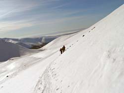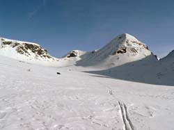 Здесь поднялись на правый склон и пошли траверсом. Потом этот отрог перевалили и очутились в долине ручья, стекающего с перевалов Рисчорра. Потом опять полезли вверх, траверсом холма между Сев. и Юж.Каскаснюньйоком.